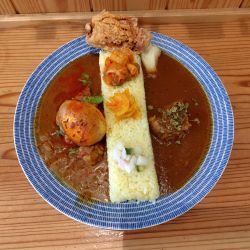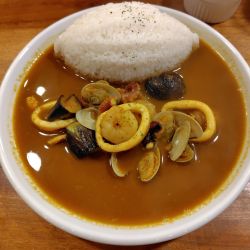 豆乳味噌仕立てとなってる豚バラと根菜のスープカレー良さげ笑